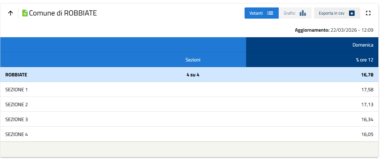 Affluenza alle ore 12.00, 19.00, 23.00 e affluenza assoluta.