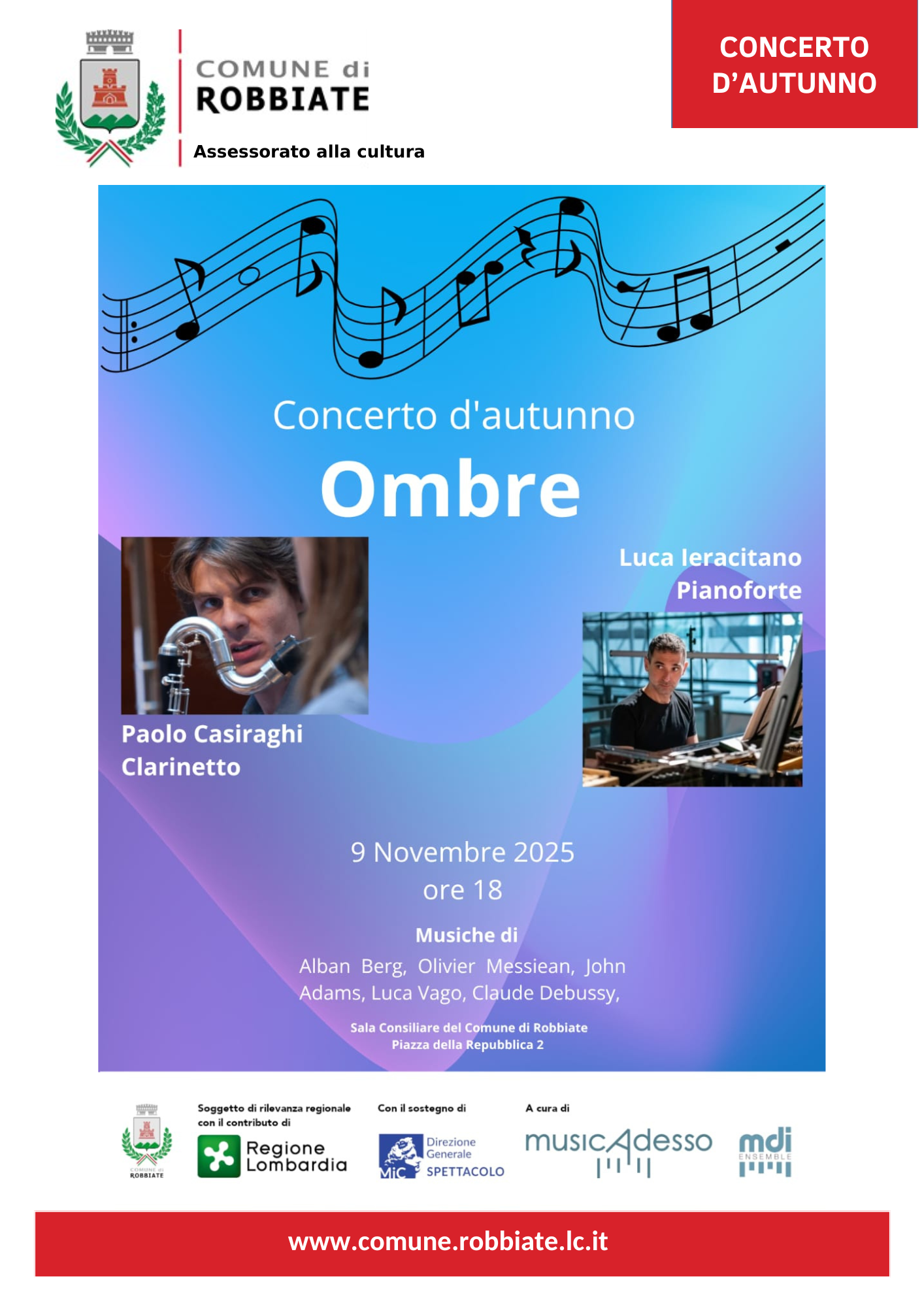 Concerto di pianoforte con Paolo Casiraghi - clarinetto - e Luca Ieracitano - pianoforte