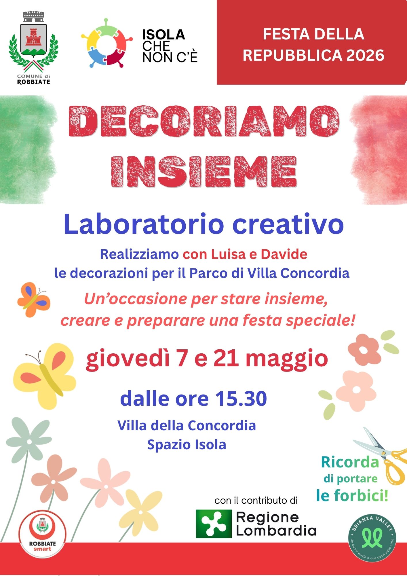 In occasione della Festa della Repubblica realizziamo con Luisa e Davide le decorazioni per il Parco di Villa Concordia