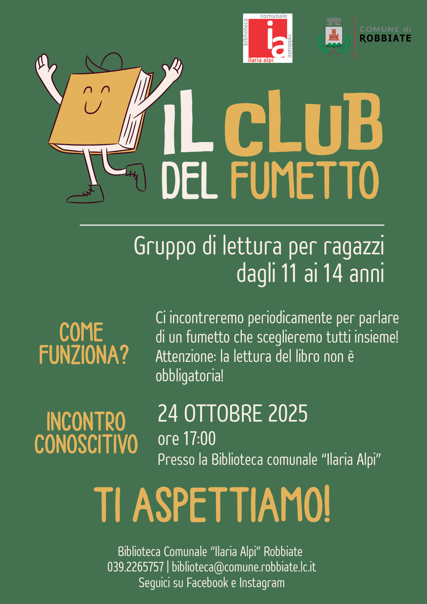 Il Club del Fumetto è un gruppo di lettura pensato per ragazzi e ragazze della scuola media, per parlare di un fumetto che sarà scelto insieme!