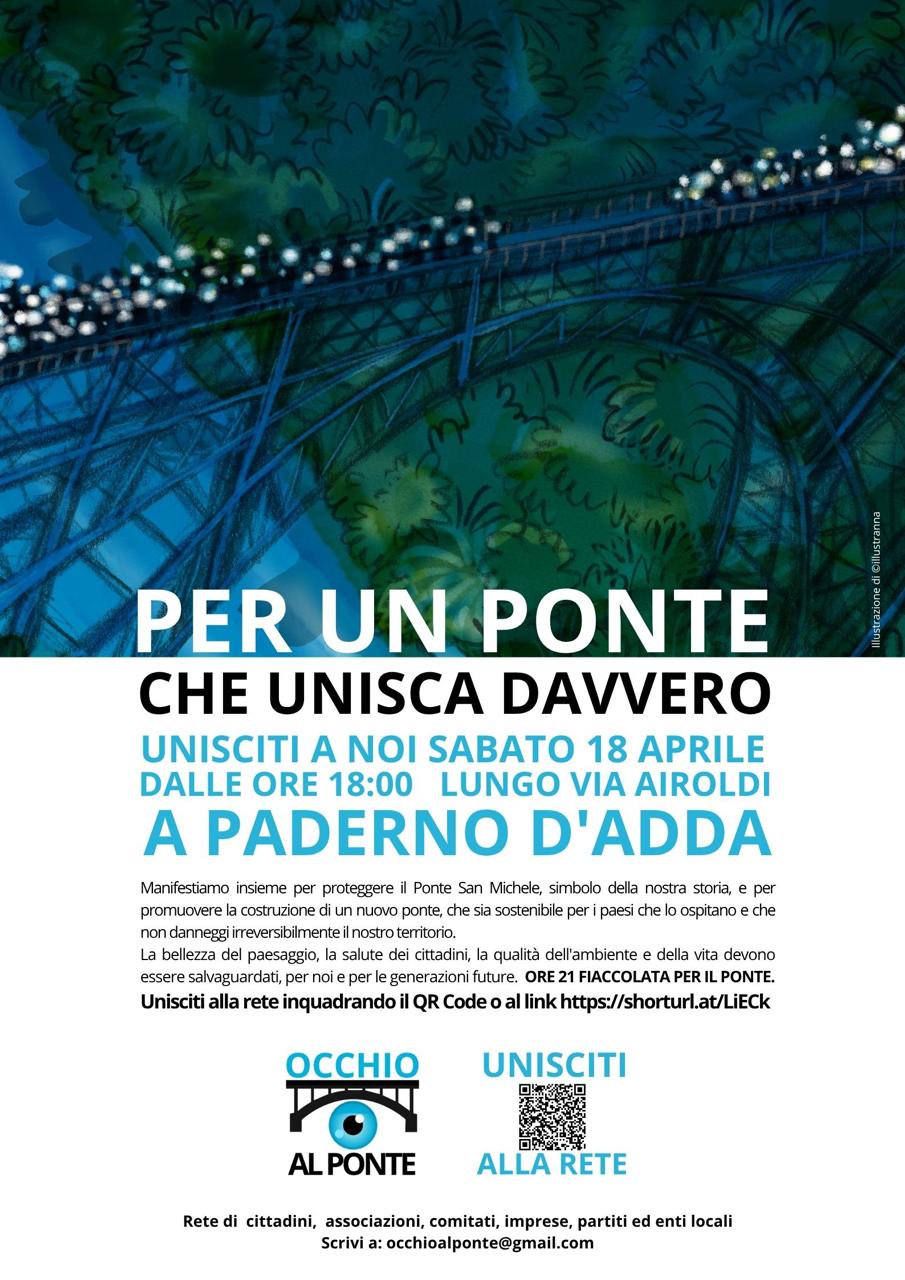 Manifestazione organizzata dalla Rete Occhio al Ponte per proteggere il ponte San Michele e promuovere la costruzione di un nuovo ponte sostenibile per il territorio.