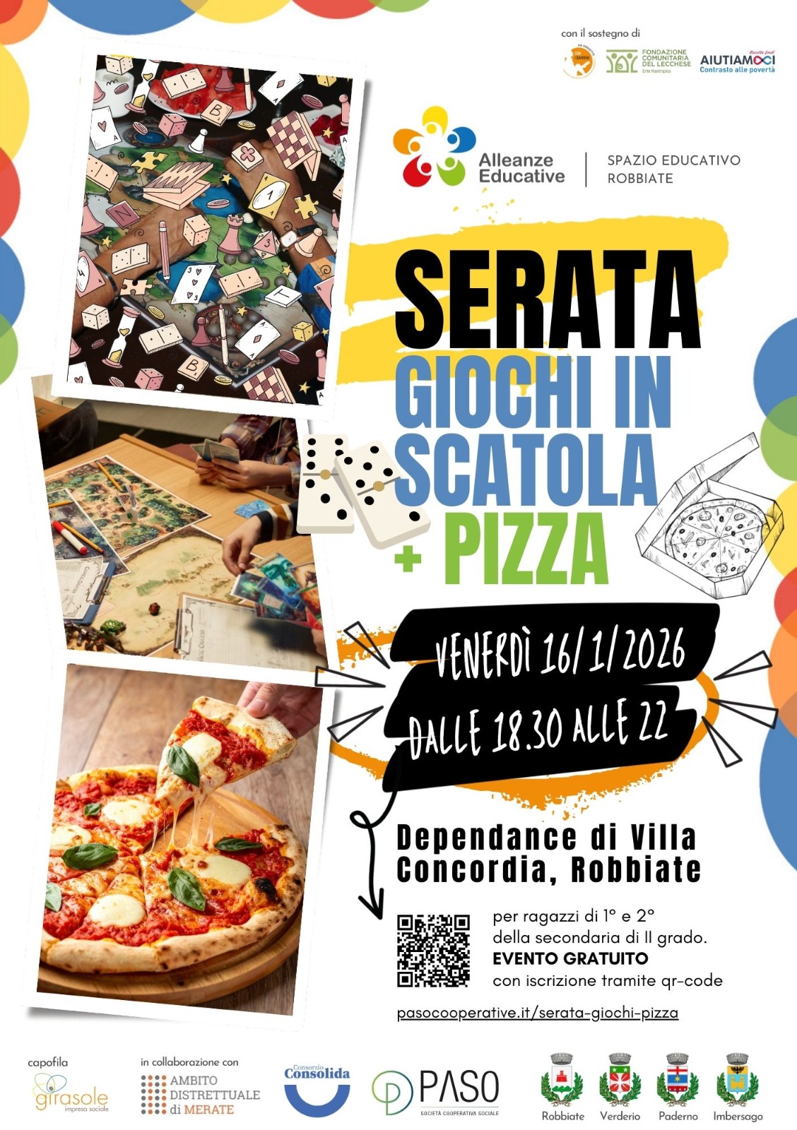 La serata è gratuita, è necessaria l'iscrizione al link: pasocooperative.it/serata-giochi-pizza