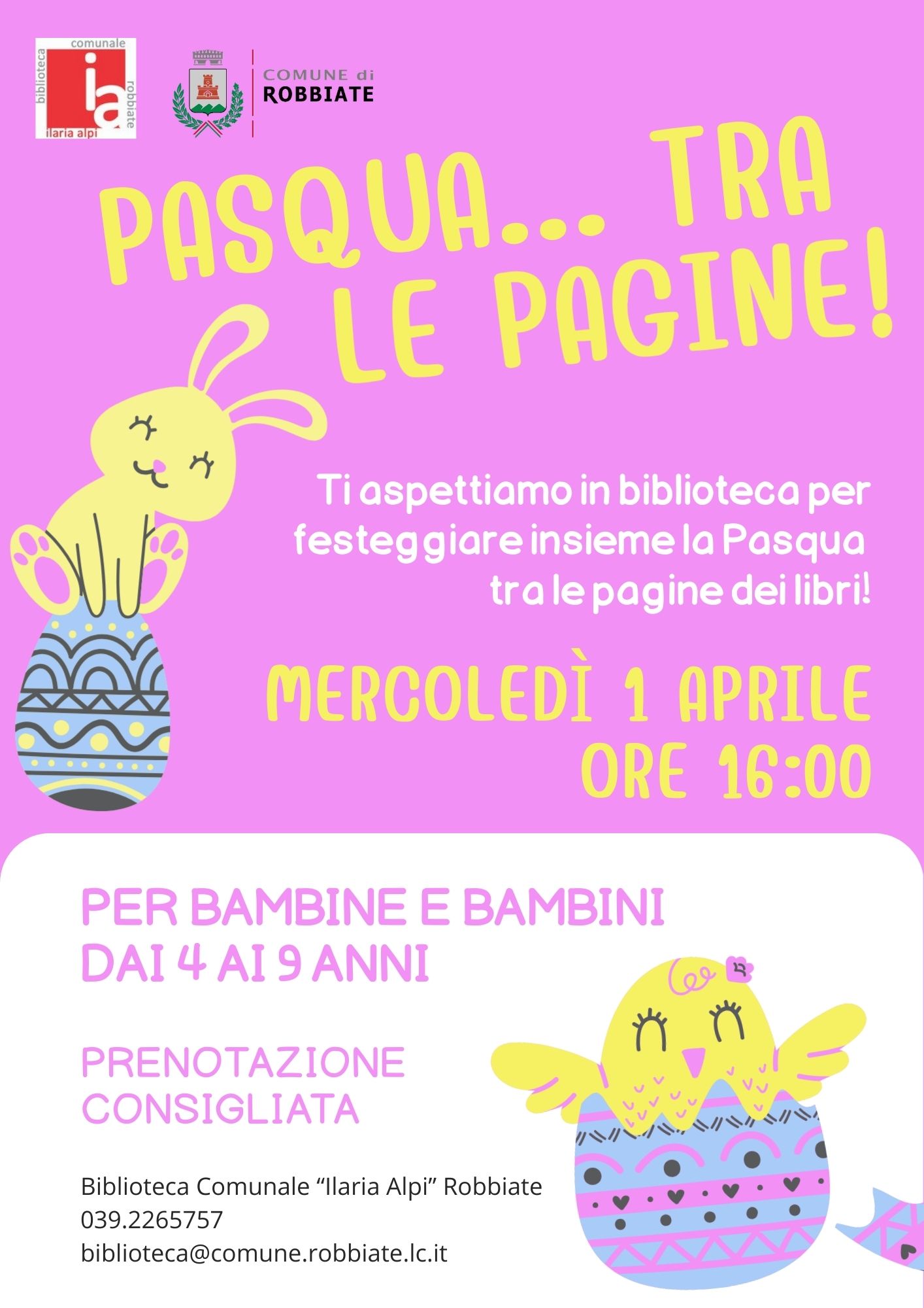 Mercoledì 1 aprile - letture e laboratorio a tema pasquale